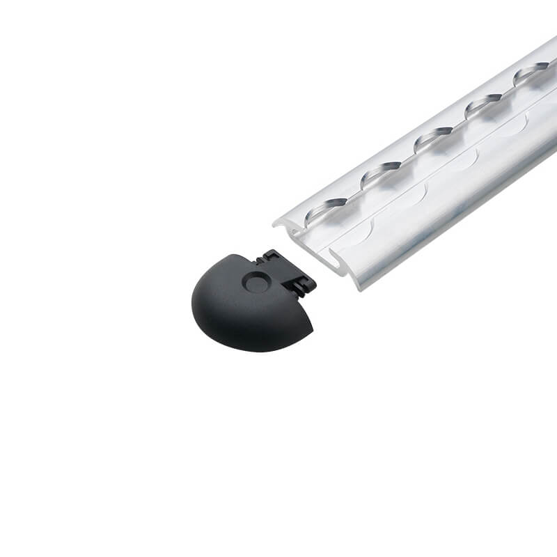 Das RACKY® Endstück für unsere Zurrschiene Typ 4 wird einfach am Ende der Zurrschiene in das Profil geschoben (Klickversion). Lästige, scharfkantige Kanten verschwinden.