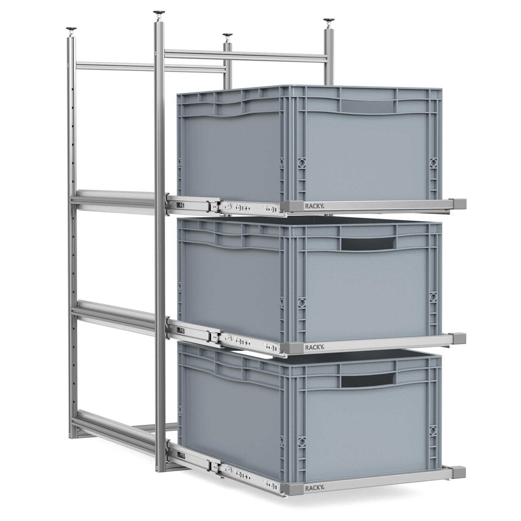 Jeder Auszug kann mit folgende RACKY® Boxen bestückt werden: